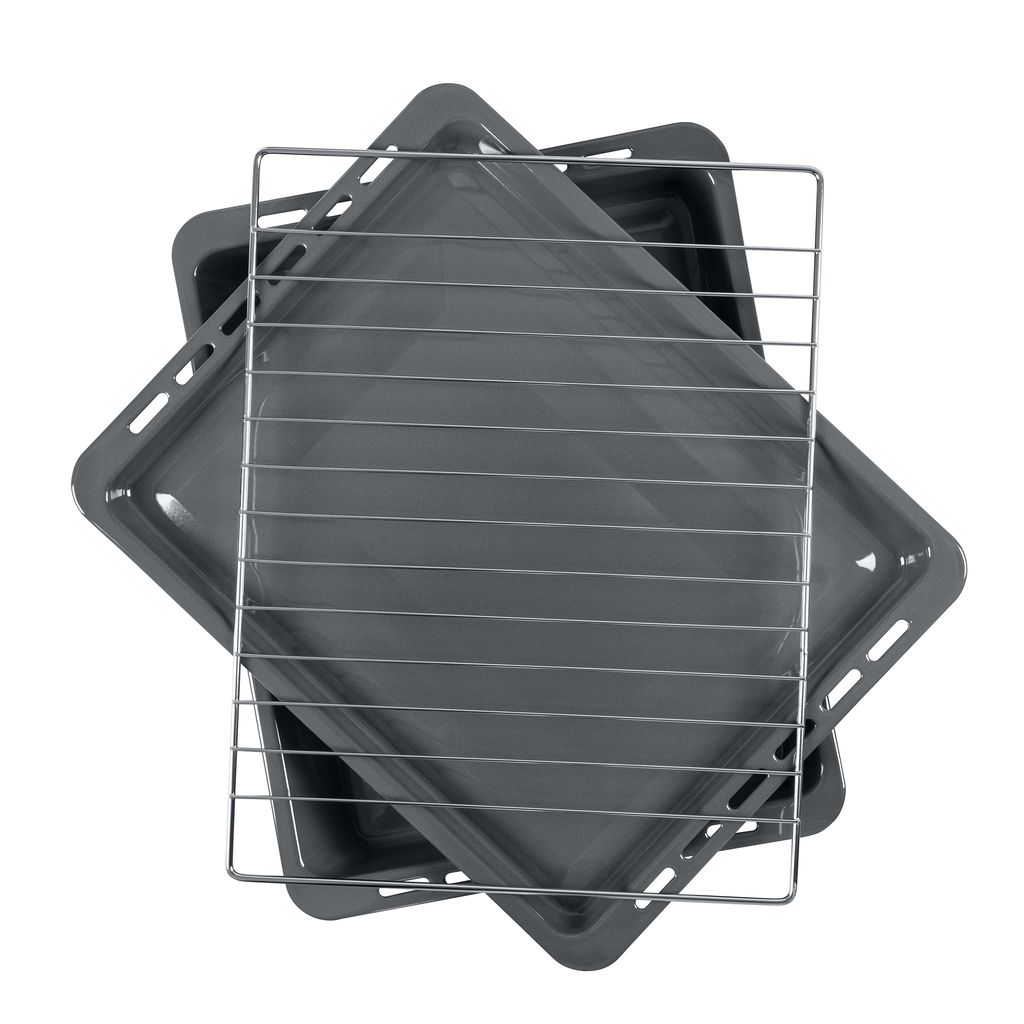 Объем 67 л при стандартной ширине 60 см позволяет готовить одновременно несколько блюд, разместив решетку или противень на одном из 5-ти уровней боковых направляющих. Один уровень оснащен удобными телескопическими направляющими. Внутреннее покрытие камеры выполнено из специальной легкоочищающейся эмали серого цвета.