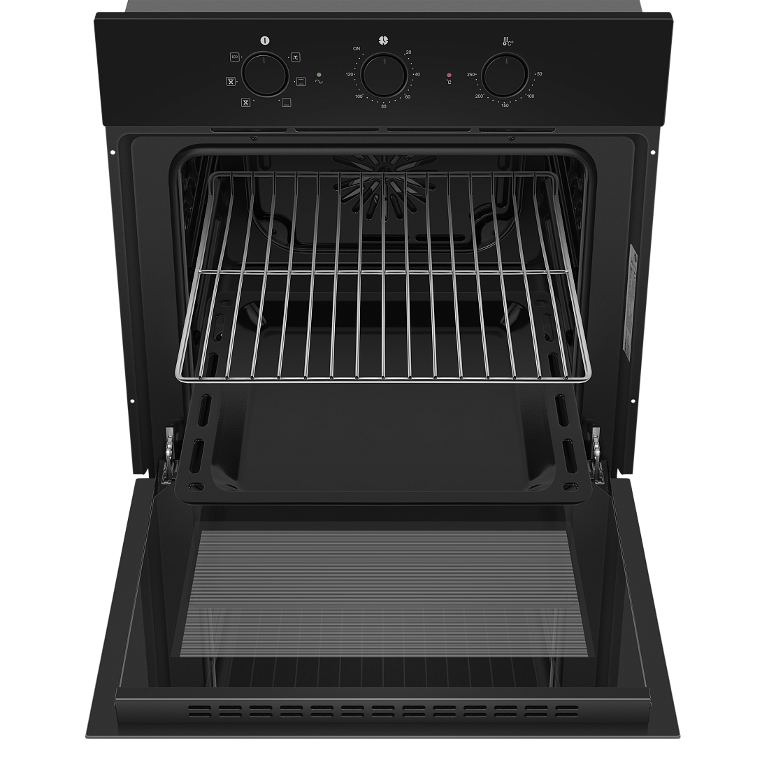 Шкаф духовой электрический HOMSair/ электрический, встраиваемый, механическое управление, 60 л., конвекция, гриль, таймер, черный, черные переключатели