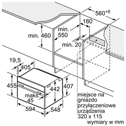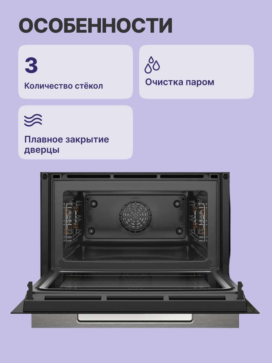 Компактная духовка с микроволновой печью и 16 типами нагрева, 45.5x59.5x54.8 см, 45л, дисплей,инвертор,SoftClose и SoftOpen, Bosch Assist, черный