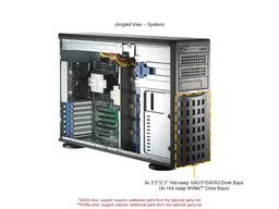 SuperMicro SYS-741P-TRT (bundle2) оснащен 8 отсеками для установки накопителей форм-фактора 3.5", поддерживающих интерфейсы SATA3, SAS и NVMe. Это позволяет гибко настраивать систему хранения данных в зависимости от потребностей и бюджета. Поддержка NVMe обеспечивает высокую скорость чтения и записи данных, что особенно важно для приложений, требующих быстрого доступа к данным.