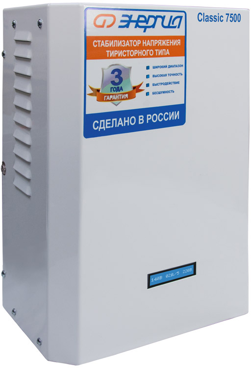 Все это позволяет отнести тиристорные стабилизаторы Энергия Classic к электрооборудованию премиум класса по качеству и надежности.
