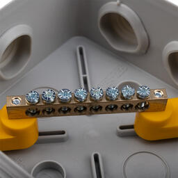 Коробки уравнивания потенциалов (КУП) предназначены для организации дополнительной системы уравнивания потенциалов в квартирах, домах, офисах и производственных помещениях, в том числе защиты жизни человека в помещениях с повышенной опасностью поражения электрическим током, таких как ванные комнаты, душевые и сауны.Характеристики:Степень защиты: IP55Цвет: серыйМатериал: пластикКоличество вводов: 6Шина: 6х9 8 группНаклейка «Заземление» в комплекте