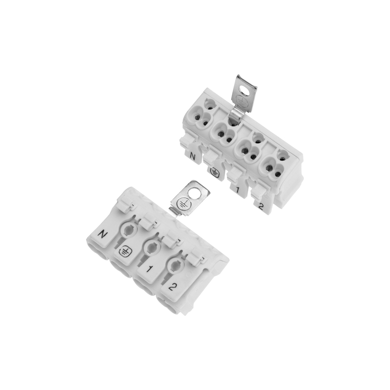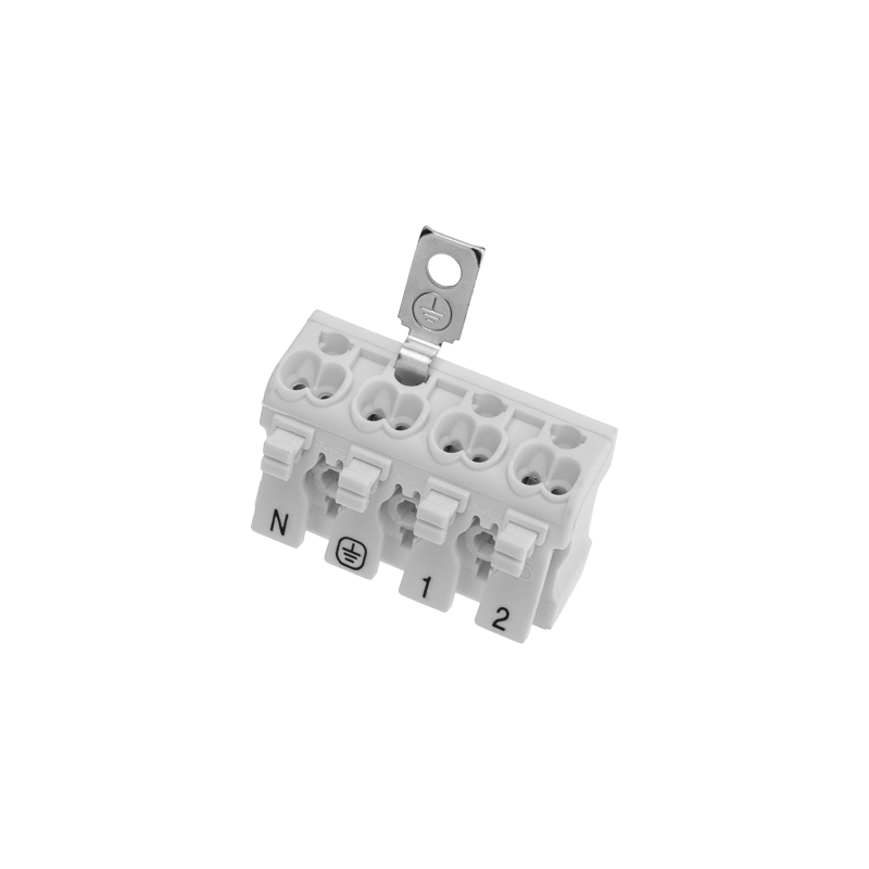 Пружинные четырехполюсные клеммы с заземлением и с монтажными ножками REXANT предназначены для присоединения и ответвления одножильных и многожильных медных проводников в электрических цепях переменного тока напряжением до 450 В. Наличие маркировки («фаза», «ноль», «земля») на подвижной части зажима, наличие монтажной ножки и винтовой контакт заземления. Материал корпуса – самозатухающий ПВХ, материал контакта – электротехническая сталь.
