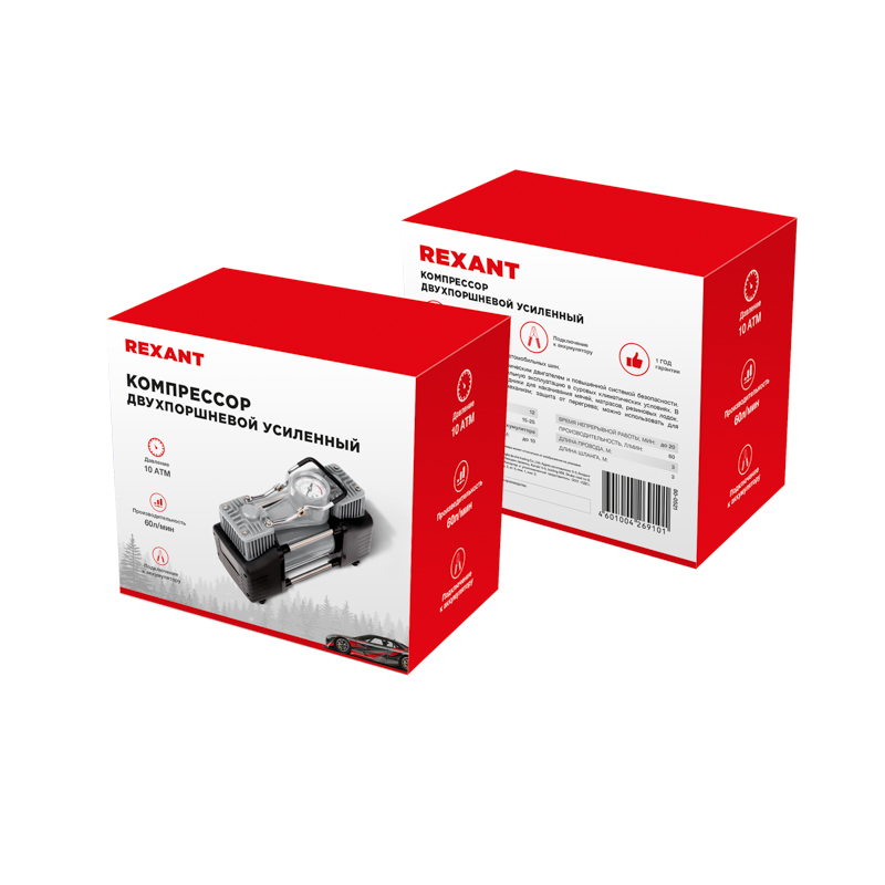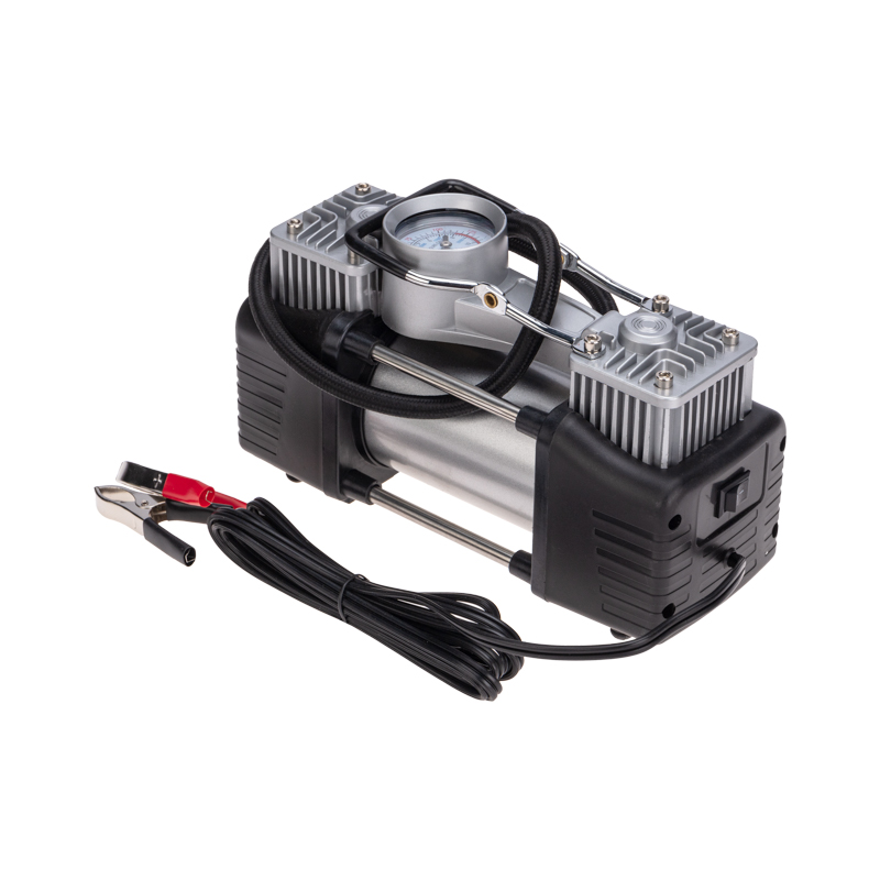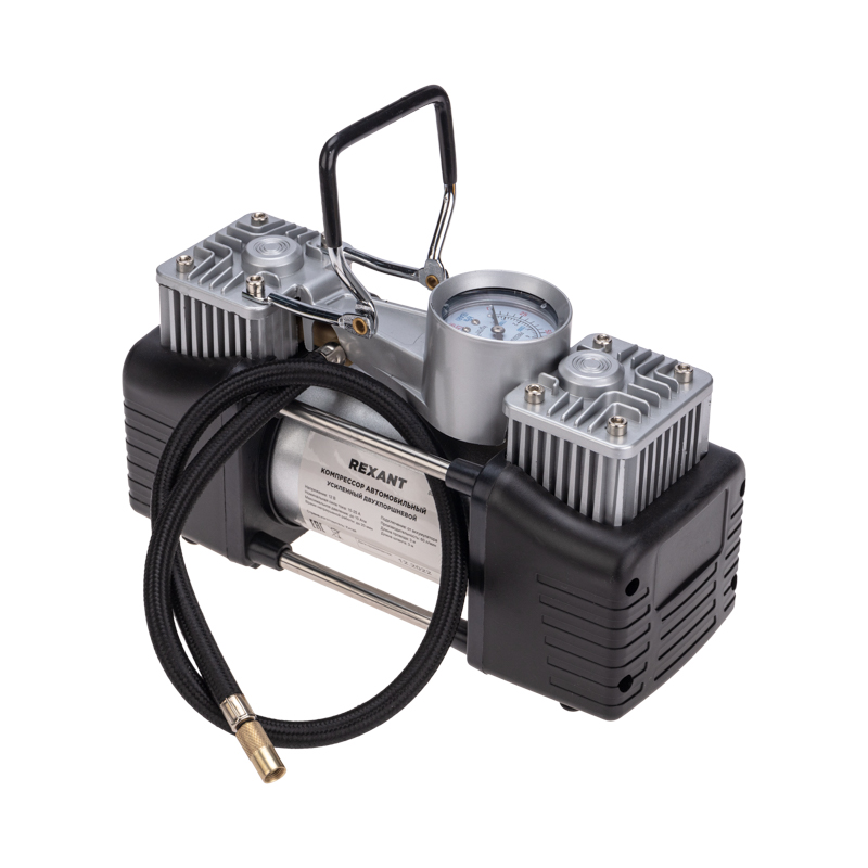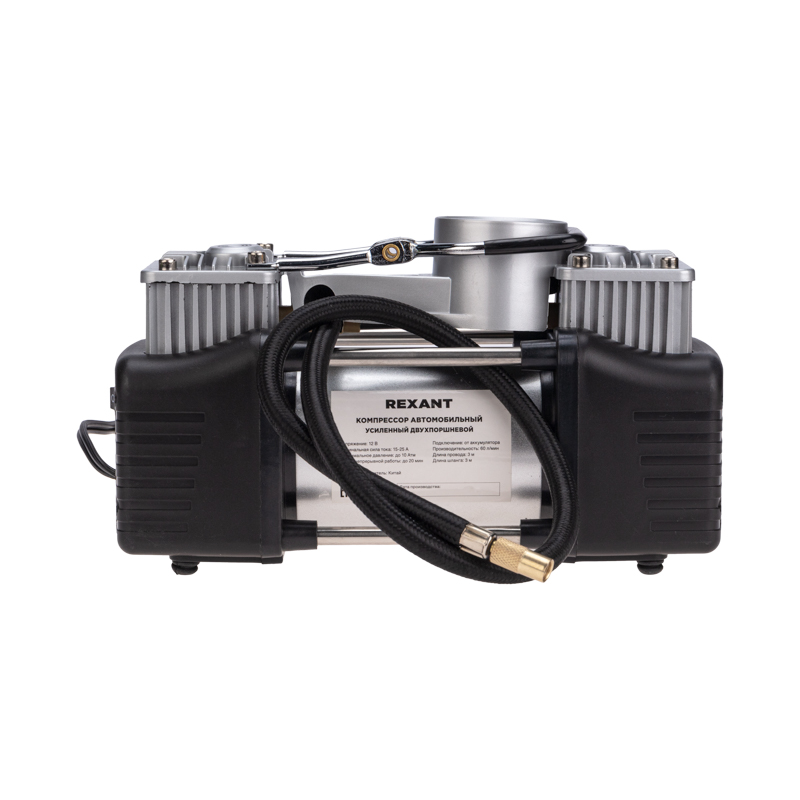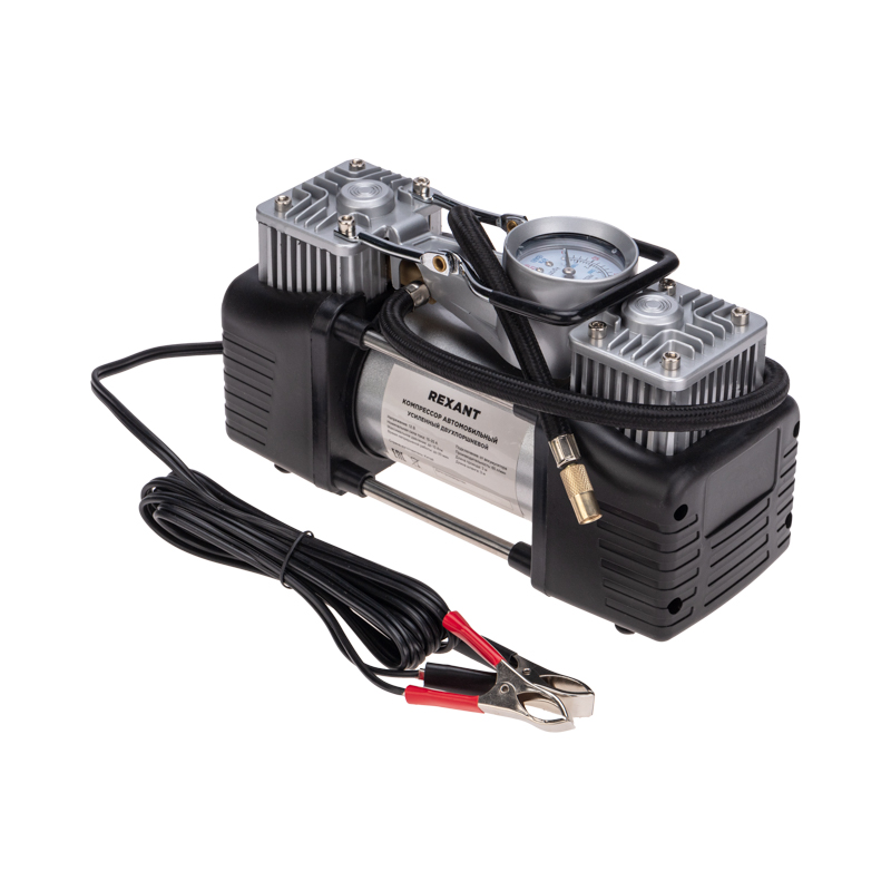 Компрессор автомобильный, металлический, усиленный, двухпоршневой, 60 л/мин, с питанием от АКБ автомобиля REXANT. Используется для накачки автомобильных шин легковых автомобилей, кроссоверов, внедорожников и малого коммерческого транспорта.