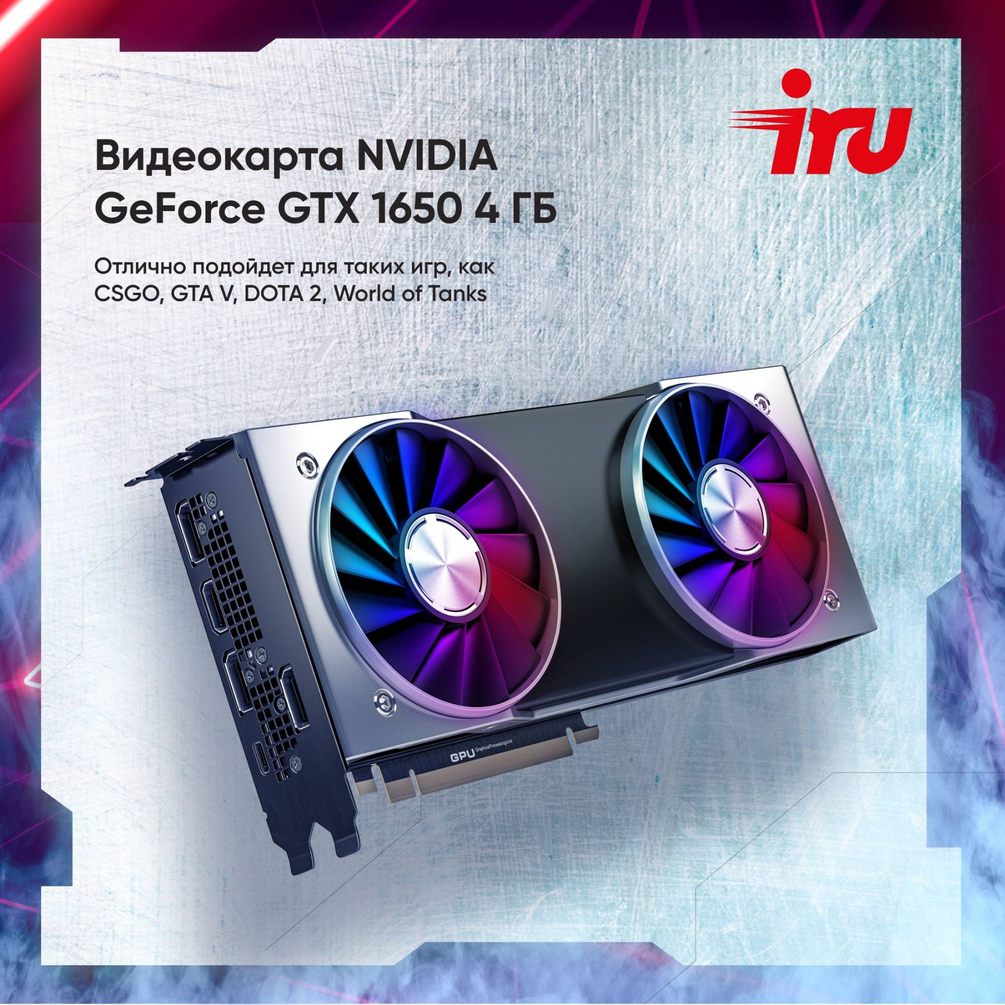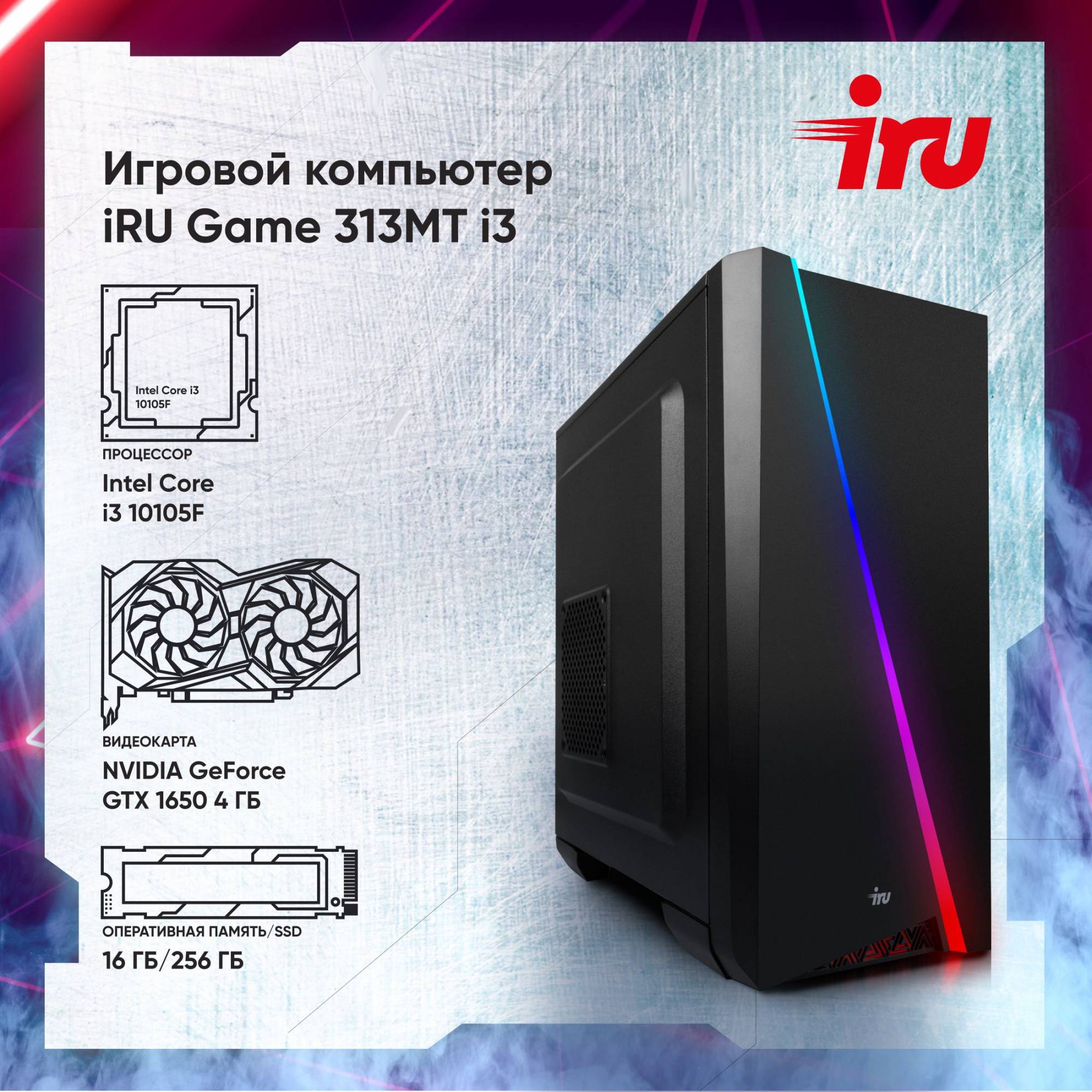 Компьютер IRU Game 313, Intel Core i3 10105F, DDR4 16ГБ, SSD 256ГБ, NVIDIA GeForce GTX 1650 4096МБ, FreeDOS, черный (1927627)