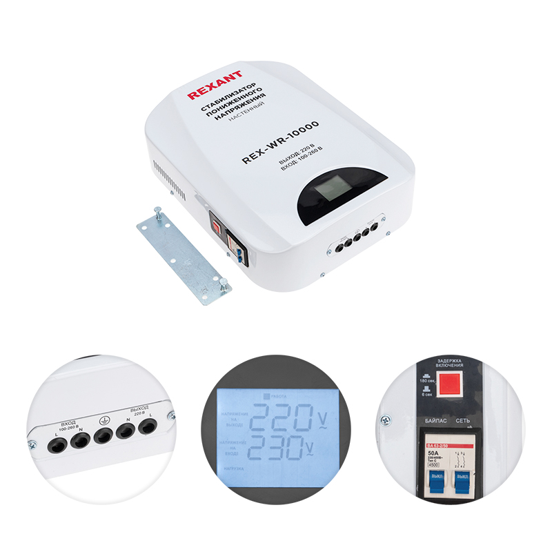 Однофазный стабилизатор переменного напряжения релейного типа марки REXANT предназначены для поддержания стабильного напряжения сети и питания электрооборудования и бытовых приборов.