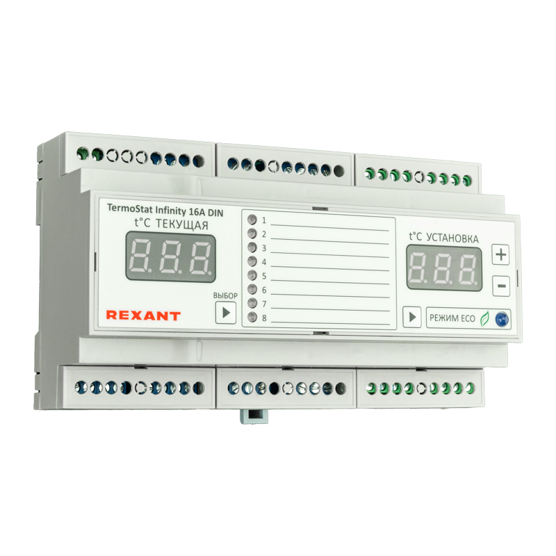 В комплекте 1 терморегулятор TermoStat Infinity 16А и 8 датчиков температуры Temp С-2.