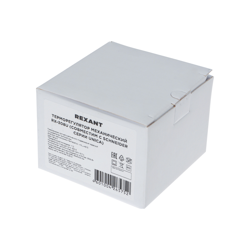 Механический термостат RX-308U от REXANT белого цвета обеспечивает регулировку температуры в диапазоне от +15°C до +45°C. Имеет высокую коммутационную способность контактов до 16 А (3500 Вт), что позволяет использовать его для управления большим количеством электроприборов.