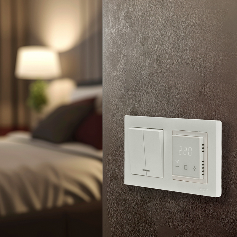 Терморегулятор совместим с сериями Schneider Unica, Legrand Valena, Schneider Exxact и многими другими рамами, внутренний размер которых составляет 56х56 мм. Управление устройством можно осуществлять через приложение на вашем смартфоне.