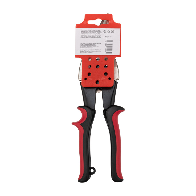 Ножницы по металлу левые REXANT 260 мм предназначены для левого реза и используются для резки металла толщиной до 1,2 мм, а также нержавеющей листовой стали толщиной 0,7 мм. Специальная форма усиленных рукояток обеспечивает дополнительный комфорт при работе.Для удобства хранения и транспортировки имеется запорный механизм, который удерживает режущие кромки ножниц в закрытом положении.Хром-ванадиевый сплав (Chrome Vanadium) CrV, из которого изготовлен инструмент, обладает такими свойствами, как прочность, жесткость и устойчивость к износу. Во время прокаливания он менее подвержен деформациям и потере первоначальной формы, чем другие типы инструментальной стали. Технические характеристики: Материал рабочей части: высокоуглеродистая сталь CrV Твердость на поверхности инструмента: ≥48 HRCТвердость на поверхности губок: 58-62 HRCПокрытие: никельУсиленные рукояткиСпособ обработки: закалкаДлина инструмента: 260 ммМатериал рукояток: ПВХ