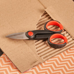 Ножницы универсальные REXANT идеально подходят для резки кожи, резины, картона, пластика, гофры, медных проводов, кабеля.Лезвия из нержавеющей стали.Рукоятки: двухкомпонентныеТолщина лезвий: 3 ммДлина лезвий: 50 ммОбщая длина: 140 мм