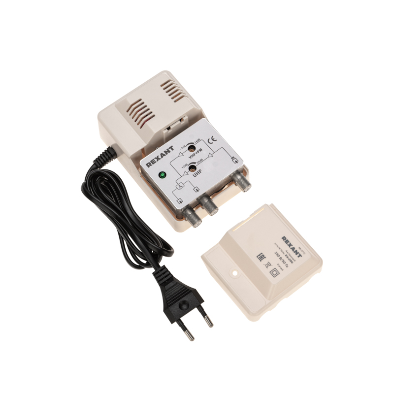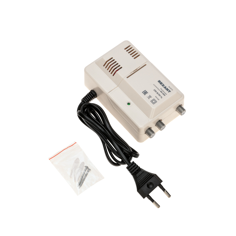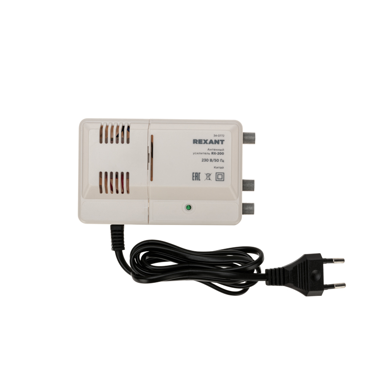 Антенный усилитель RX-200 предназначен для усиления цифрового эфирного сигнала в стандарте DVB-T2 в диапазоне частот 47…862 МГц. Позволяет развести ТВ сигнал, принимаемый от одной антенны, на 2 выхода, к которым можно подключить два DVB-T2 приемника/два телевизора.