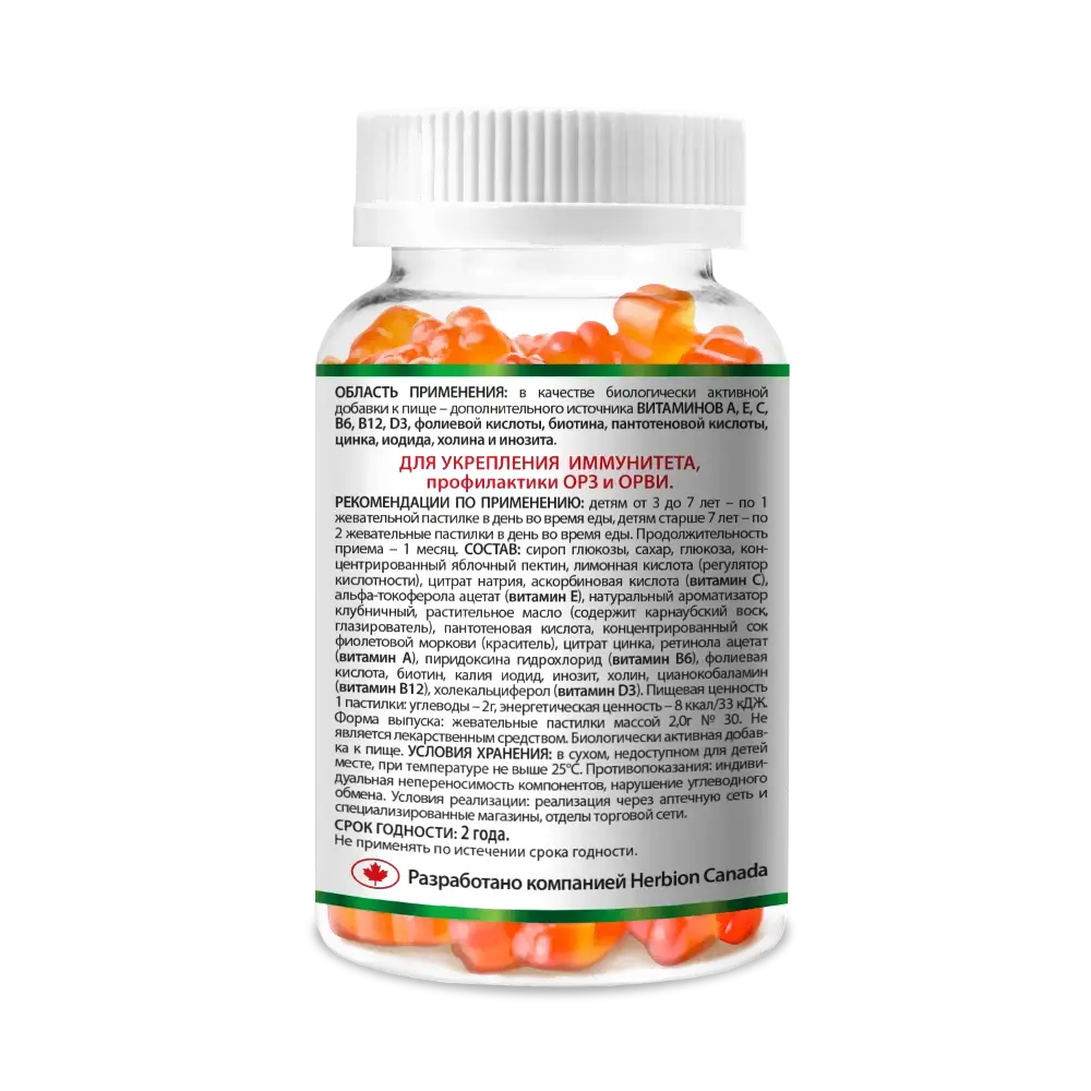 - Витамины A, C, E, B12, B6, B5, B4, B9, B8, D3