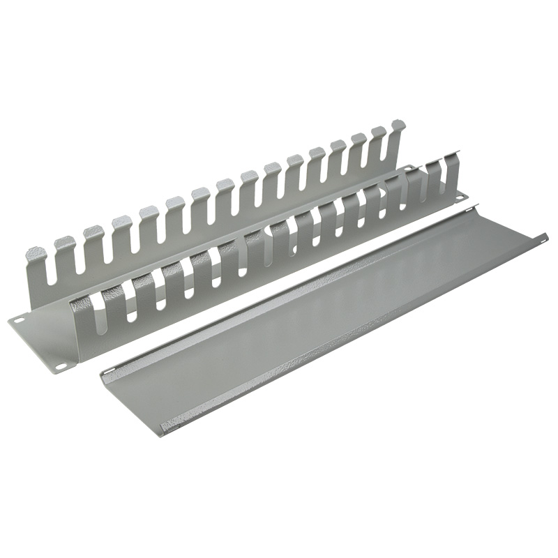 Горизонтальный кабельный органайзер 2U предназначен для более удобного и компактного размещения коммутационного кабеля.Кабельный органайзер изготовлен из цельнометаллической панели высотой 2U. На лицевой стороне органайзера размещены 5 металлических колец для фиксации кабеля. Имеет порошково-полимерное покрытие серого цвета.