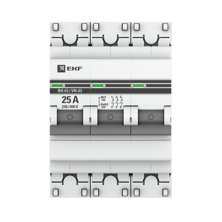 Выключатели нагрузки ВН-63 и ВН-125 EKF PROxima предназначены для оперативного управления участками электрических цепей. Выключатели производятся в одно-, двух-, трехи четырехполюсном исполнениях. Выключатели нагрузки ВН-63 (125) EKF PROxima выполнены в новом, уникальном дизайне корпуса из не поддерживающей горение пластмассы и взаимозаменяемы с ВН-63 (100).