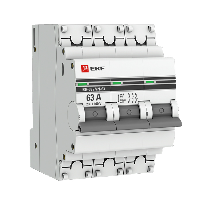 Выключатели нагрузки ВН-63 и ВН-125 EKF PROxima предназначены для оперативного управления участками электрических цепей. Выключатели производятся в одно-, двух-, трехи четырехполюсном исполнениях. Выключатели нагрузки ВН-63 (125) EKF PROxima выполнены в новом, уникальном дизайне корпуса из не поддерживающей горение пластмассы и взаимозаменяемы с ВН-63 (100).