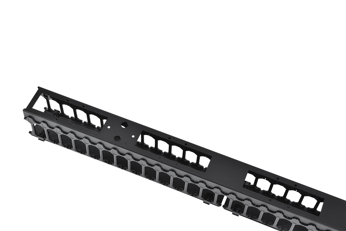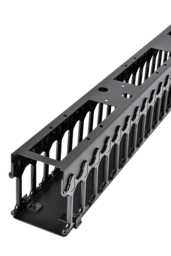 Вертикальный кабельный органайзер с пластиковыми “пальцами” и металлическими крышками на защёлках предназначен для удобной организации коммутационного кабеля в шкафах серии ШТК-СП. Крышка с защёлкивающимися петлями обеспечивает легкий доступ к кабелю, а гладкие пластиковые штифты, правильный радиус изгиба. Предусмотрена установка щеточных вводов КВ-Щ-55.210А-9005.