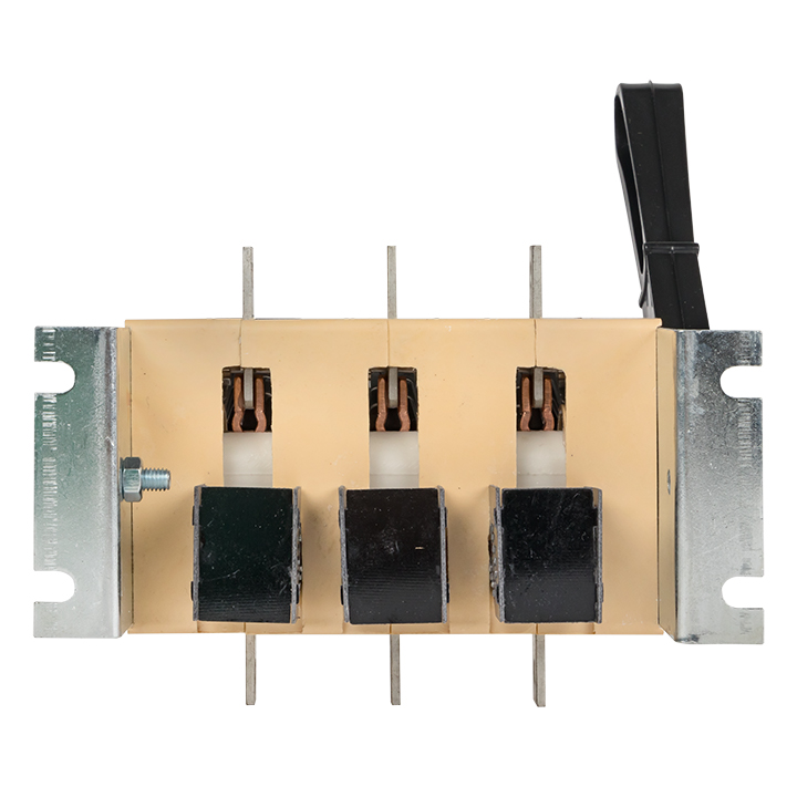 В конструкции применена трехполюсная контактная система ножевого типа с двойным видимым разрывом цепи. С помощью двойного разрыва цепи, больших растворов контактов и дугогасительных камер обеспечивается эффективное гашение электрической дуги при коммутации нагрузок, что препятствует преждевременному и чрезмерному износу контактов.