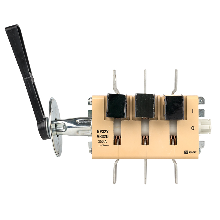 Конструкция контактных выводов обеспечивает болтовое присоединение шин или проводников, оконцованных кабельными наконечниками. Все рубильники являются универсальными по типу присоединения рукоятки. Конструкция рубильника предусматривает установку рукоятки как справа от корпуса, так и слева. Расположение рукоятки, левое или правое, можно поменять в процессе эксплуатации при необходимости.