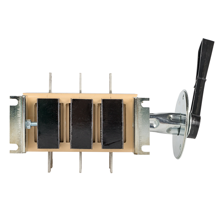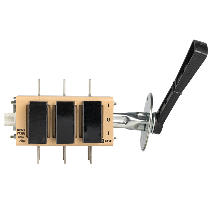 Конструкция контактных выводов обеспечивает болтовое присоединение шин или проводников, оконцованных кабельными наконечниками. Все рубильники являются универсальными по типу присоединения рукоятки. Конструкция рубильника предусматривает установку рукоятки как справа от корпуса, так и слева. Расположение рукоятки, левое или правое, можно поменять в процессе эксплуатации при необходимости.