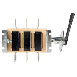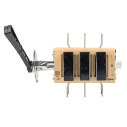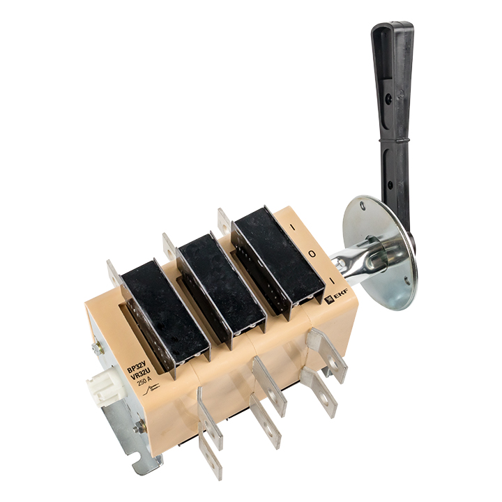 Конструкция контактных выводов обеспечивает болтовое присоединение шин или проводников, оконцованных кабельными наконечниками. Все рубильники являются универсальными по типу присоединения рукоятки. Конструкция рубильника предусматривает установку рукоятки как справа от корпуса, так и слева. Расположение рукоятки, левое или правое, можно поменять в процессе эксплуатации при необходимости.
