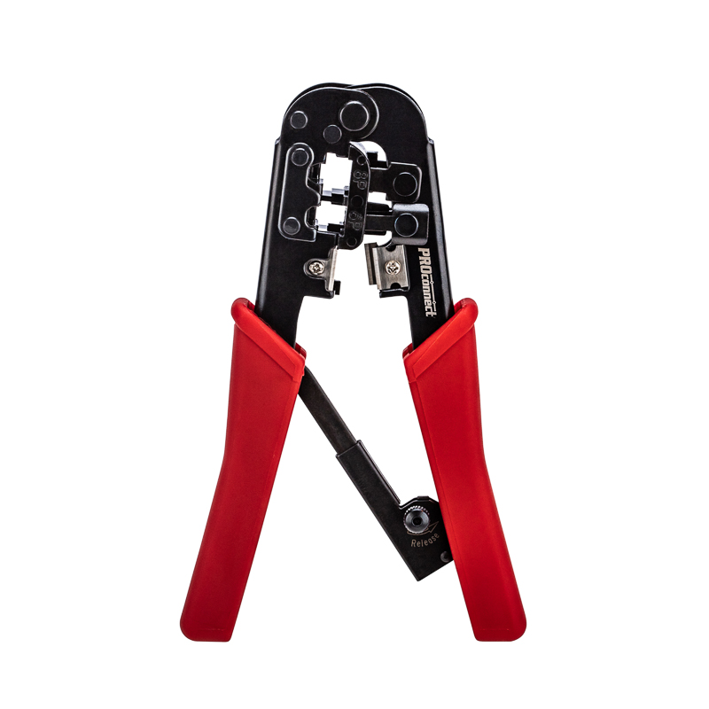 Кримпер PROconnect HT-568R — универсальный инструмент для обжима разъемов RJ-45 (8P8C), RJ-12 (6P6C) и RJ-11 (6P4C и 6P2C), а также для снятия изоляции и обрезки проводов.Особенности:- Корпус выполнен из высокопрочной закаленной инструментальной стали с воронением.- Возвратный механизм для обеспечения обратного хода рукояток.- Храповый механизм предотвращает обратный ход рукояток во время цикла обрезки.- Для более удобной работы предусмотрена функция быстрой разблокировки лезвий после обрезки.- Высокопрочные режущие сегменты закругленной формы оптимально обхватывают поверхность кабеля и обрезают его без деформаций и скосов.- Удобные рукоятки, выполненные из нескользящего плотного синтетического покрытия.