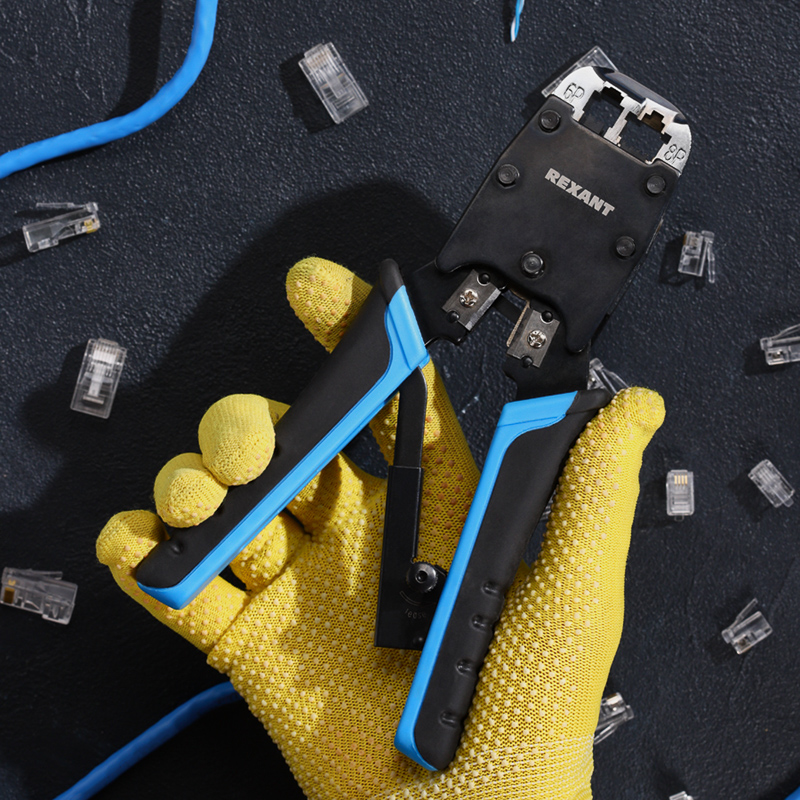 Кримпер REXANT HT-500R ТАЙВАНЬ — универсальный инструмент для обжима разъемов RJ-45 (8P8C), RJ-12 (6P6C) и RJ-11 (6P4C и 6P2C), а также для снятия изоляции и обрезки проводов. Особенности: - Корпус выполнен из высокопрочной закаленной инструментальной стали с воронением.- Возвратный механизм для обеспечения обратного хода рукояток. - Храповой механизм гарантирует полный цикл качественной опрессовки.- Клещи со съемными матрицами и фиксатором закрытого положения. - Удобные рукоятки с нескользящим плотным синтетическим покрытием сделают работу с инструментом легкой и приятной.