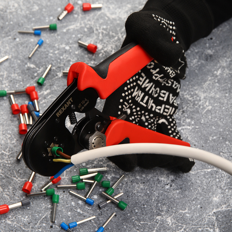 Кримпер REXANT HT 10-6 предназначен для обжима штыревых наконечников в диапазоне 0.08-10.0 мм². Особенности:- Корпус выполнен из высокопрочной закаленной инструментальной стали с воронением.- Шестисегментная саморегулирующая матрица с системой поворотных кулачков диафрагменного типа выполняет шестиугольный профиль обжима с рифлением.- Есть настройка давления опрессовки и принудительно размыкающаяся блокировка, которая не позволяет разойтись рукояткам до полной опрессовки и контролирует качество контактного соединения.- Кримпер дополнен регулятором прижимного усилия с 6 положениями.- Инструмент перекрывает диапазон обжима из 17 размеров втулочных наконечников.- Эргономичные противоскользящие рукоятки с резиновыми вставками обеспечат правильное расположение инструмента в руке и сделают работу максимально простой и приятной.