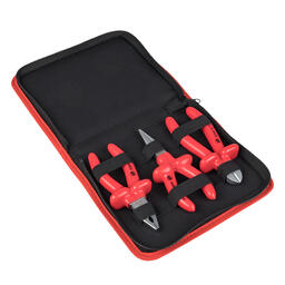 Мы предлагаем оптимальный ассортимент для выполнения большинства задач, стоящих как перед профессиональным электромонтажником, так и перед домашним мастером, а также наилучшее решение для компактного хранения инструмента и его удобной переноски- мягкий пенал, отшитый из современных синтетических водо-и грязеотталкивающих тканей с мягкой подкладкой. Для каждого предмета предусмотрена своя ячейка- инструмент не потеряется после работы.