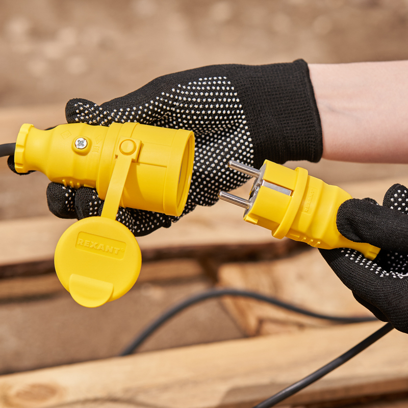 Прямая влагозащищенная электрическая вилка из каучука REXANT предназначена для использования в сложных эксплуатационных условиях и широко применяется в производстве, строительстве и машиностроении. Она легко монтируется, имеет высокую прочность и более длительный срок службы, чем вилки других производителей.Ударопрочный разборный корпус выполнен из каучука, устойчив к механическому и химическому воздействию. Технические характеристики:Напряжение: 250 ВНоминальный ток: 16 АСтепень защиты: IP44Заземление: естьСечение проводников: 0,75-2,5 мм²Тип полюсов: 2P+РEКонтактная группа: MS-58Материал корпуса: каучукРабочая температура: -30…+80 °С