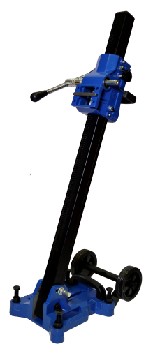 Благодаря стандартному креплению на 4 болта, вы сможете легко установить на этот штатив большинство популярных моторов. Для удобства перемещения по строительной площадке, даже с уже установленным мотором и коронкой, штатив оснащен транспортировочными колесами.