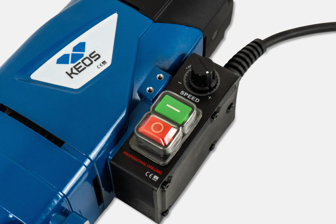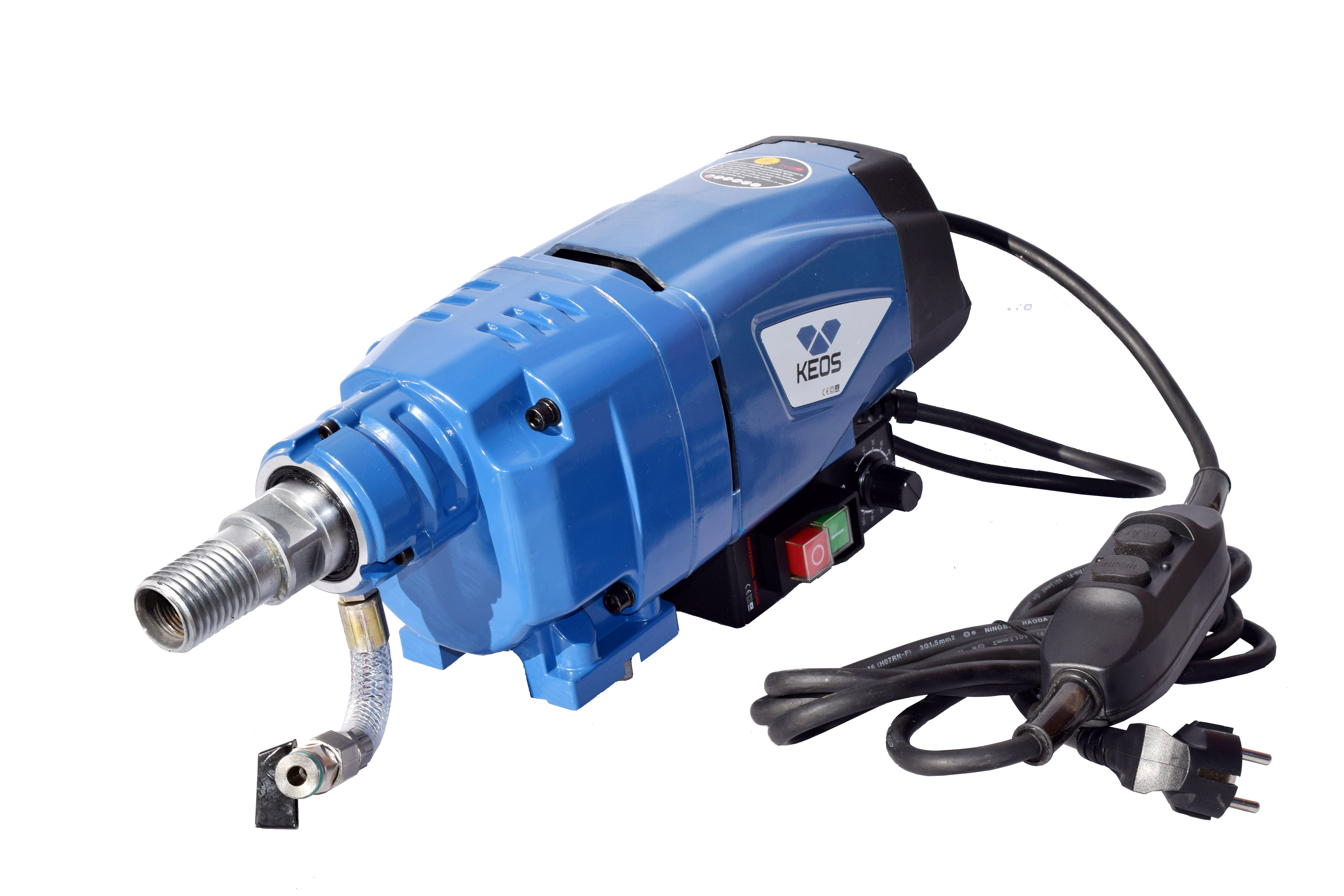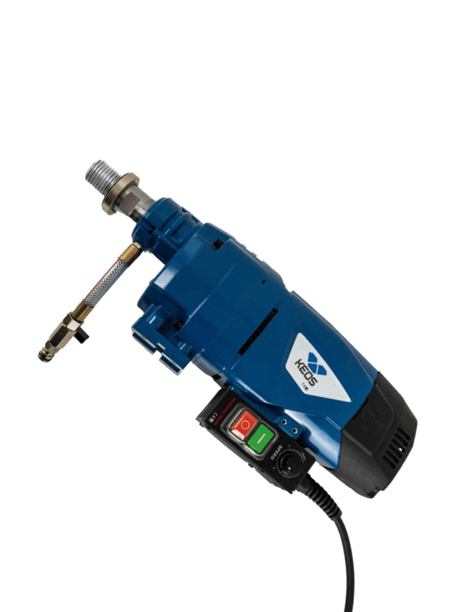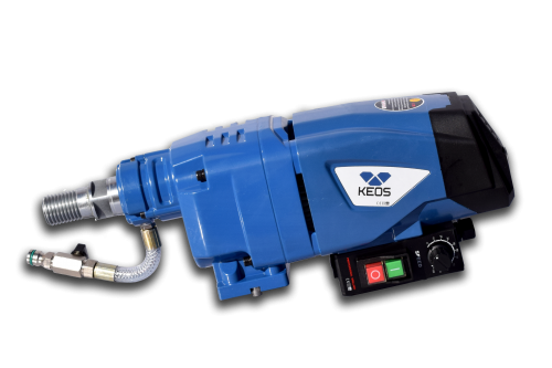 Представляем KEOS KS-250 — профессиональную установку для алмазного бурения, способную сверлить отверстия до 250 мм. Этот мощный мотор в металлическом корпусе работает со штативами.