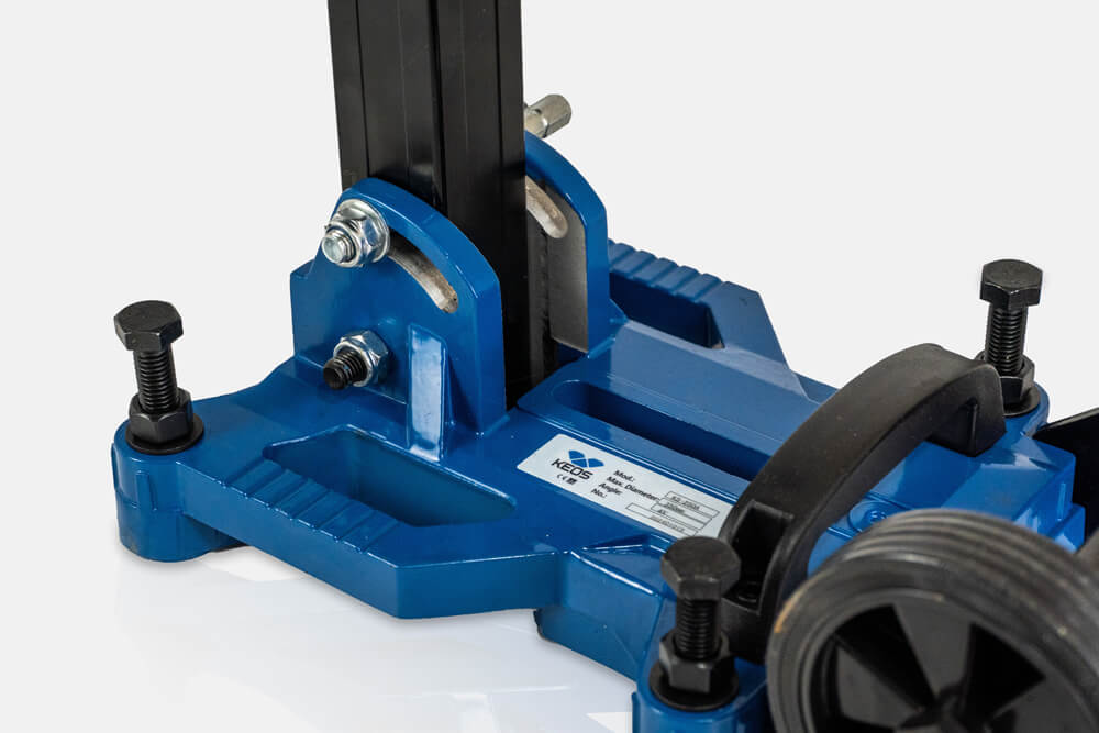 Наклонный штатив для алмазного бурения KEOS KS-250 представляет собой опорную стойку для крепления мотора с возможностью изменения угла 0-45 градусов. Регулировка и фиксация угла наклона осуществляется с помощью двух болтов в нижней части штатива.