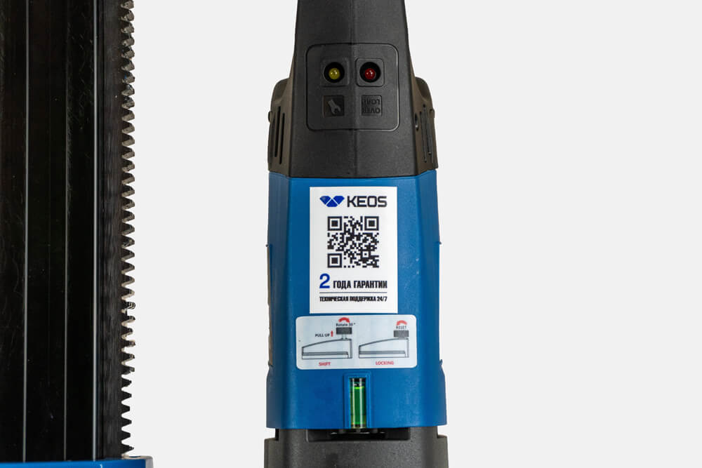 Двигатель алмазного бурения KEOS PULSAR KS-180 мощностью 2,3 кВт с функцией микроудара может эксплуатироваться как в ручную, так и с установкой на штатив. Максимальные обороты двигателя 1700 об/мин. Мотор оборудован быстросъемной муфтой для подключения пылесоса, а так же водяной муфтой для сверления с подачей воды. Редуктор двигателя оснащен предохранительной муфтой.