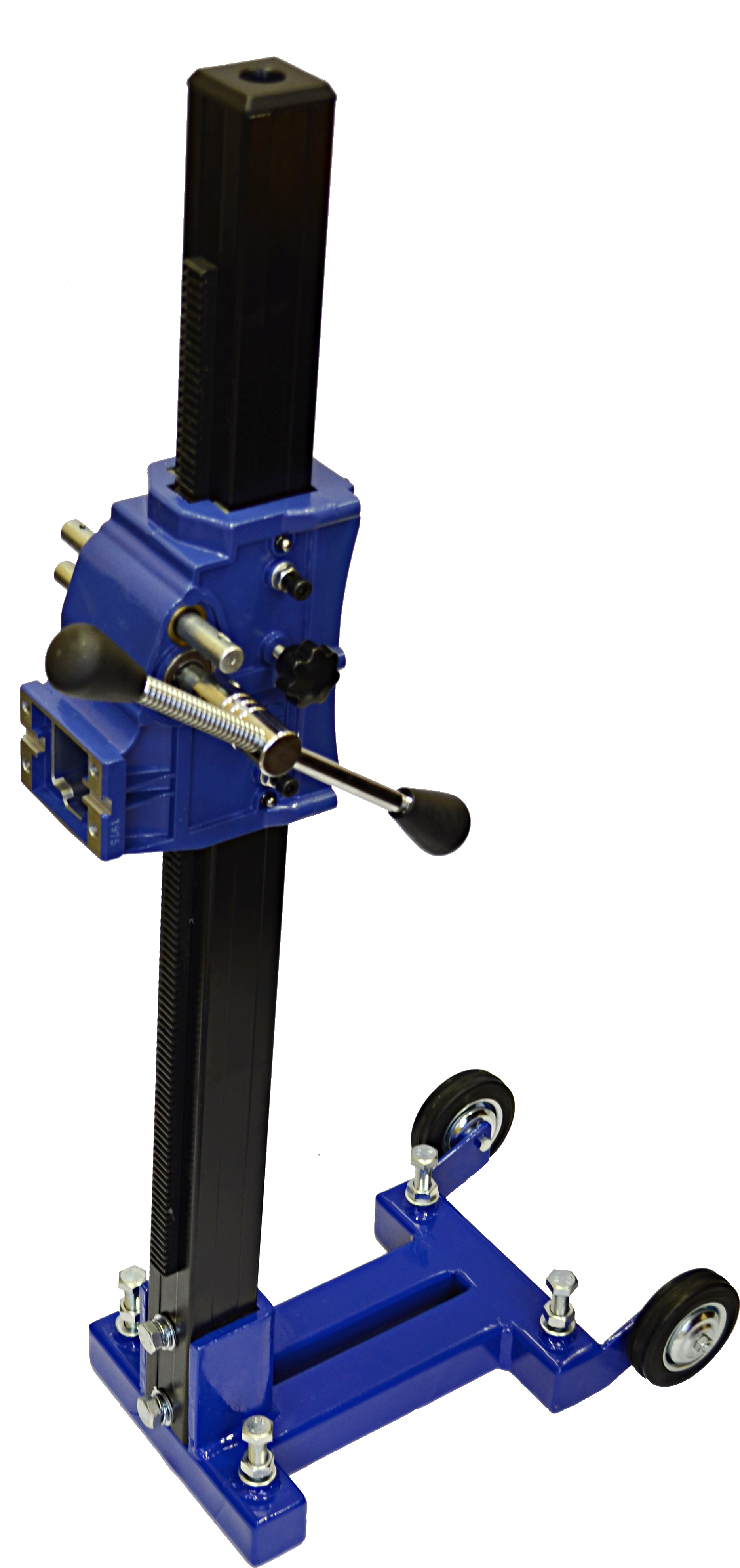 Штатив имеет две скорости редуктора каретки, что позволяет выбрать оптимальную скорость подачи мотора, адаптируясь под конкретные условия бурения. Для максимальной точности бурения, в комплекте предусмотрен пузырьковый уровень на верхней крышке двигателя, который помогает идеально выставить оборудование.