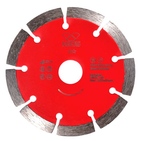 Используется для резки бетона и кирпича на УШМ и штроборезах. Используется, как для резки с подачей воды, так и всухую. Диск обладает высокой скоростью реза. Сегменты присоединены к корпусу диска горячим спеканием. Диаметр диска - 125 мм. Посадка диска - 22,23. Высота сегмента - 10 мм.