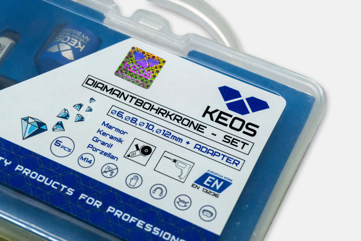Набор коронок по керамограниту KEOS PRO 6-12мм M14 с воском с переходником (DCK612M14)