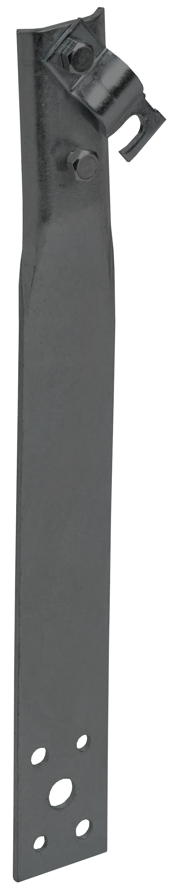 Держатель прямой с болтовым зажимом предназначен для монтажа круглого проводника на парапетах и фасадах зданий.