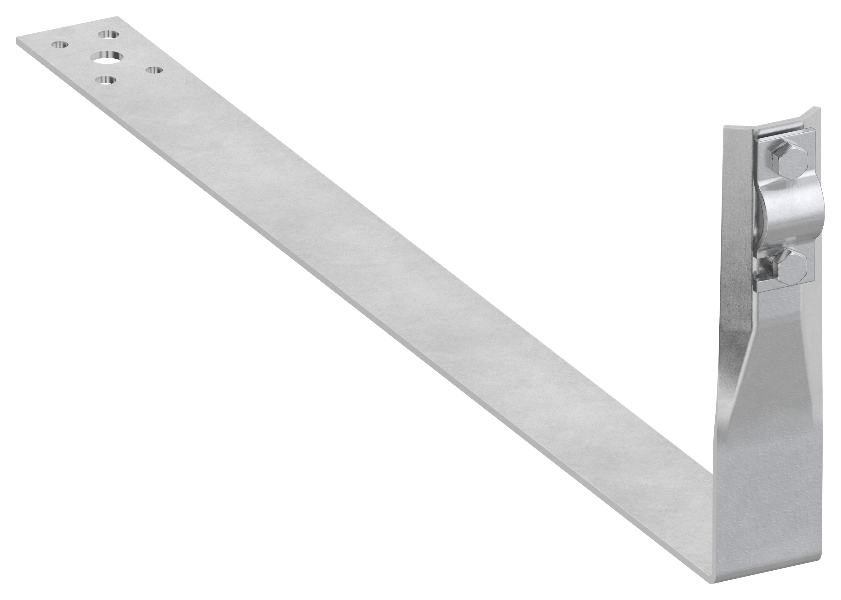 Держатель проводника круглого для черепичной кровли с болтовым зажимом предназначен для закрепления прутка на черепичной, мягкой и шиферной кровле. Держатель крепится к рейкам крыши при помощи метизов. Фиксация проводника происходит при помощи болтового соединения перпендикулярно длинной стороне держателя. Материал корпуса - сталь с гальваническим цинковым покрытием.