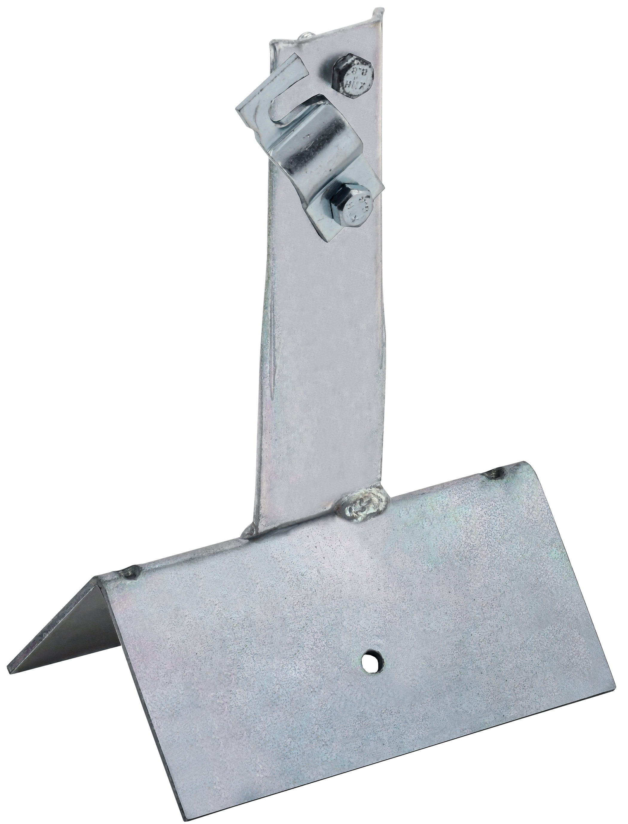 Держатель проводника круглого для конька с болтовым зажимом широкий предназначен для закрепления прутка на коньке скатной кровли. Держатель крепится к кровле при помощи метизов. Зажим проводника происходит при помощи болтового соединения.