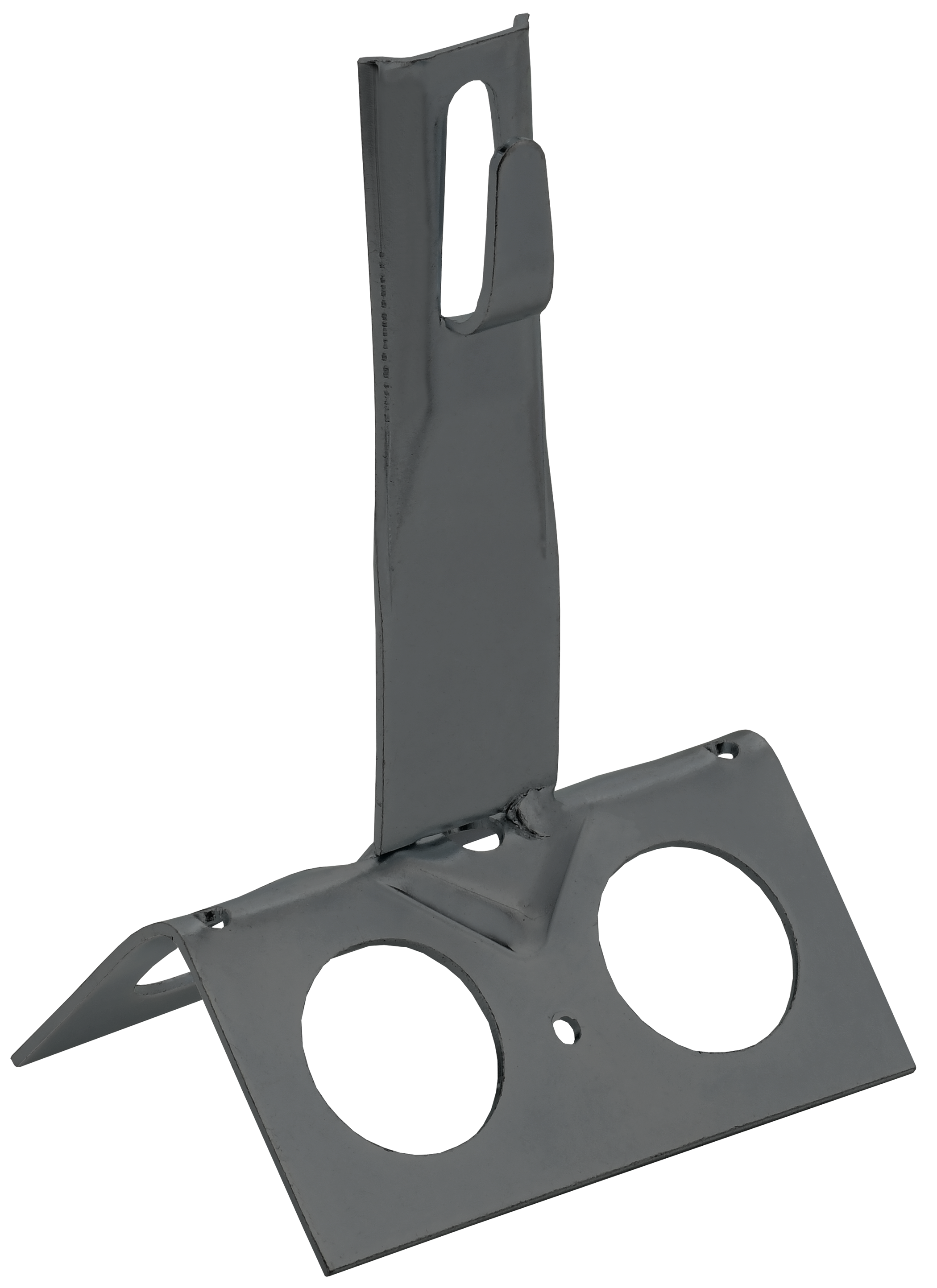 Держатель проводника круглого для конька с безболтовым зажимом широкий предназначен для закрепления прутка на коньке скатной кровли. Зажим проводника происходит путем загибания «язычка» держателя. На коньке крепится при помощи метизов. Материал корпуса - сталь с термодиффузионным цинковым покрытием.