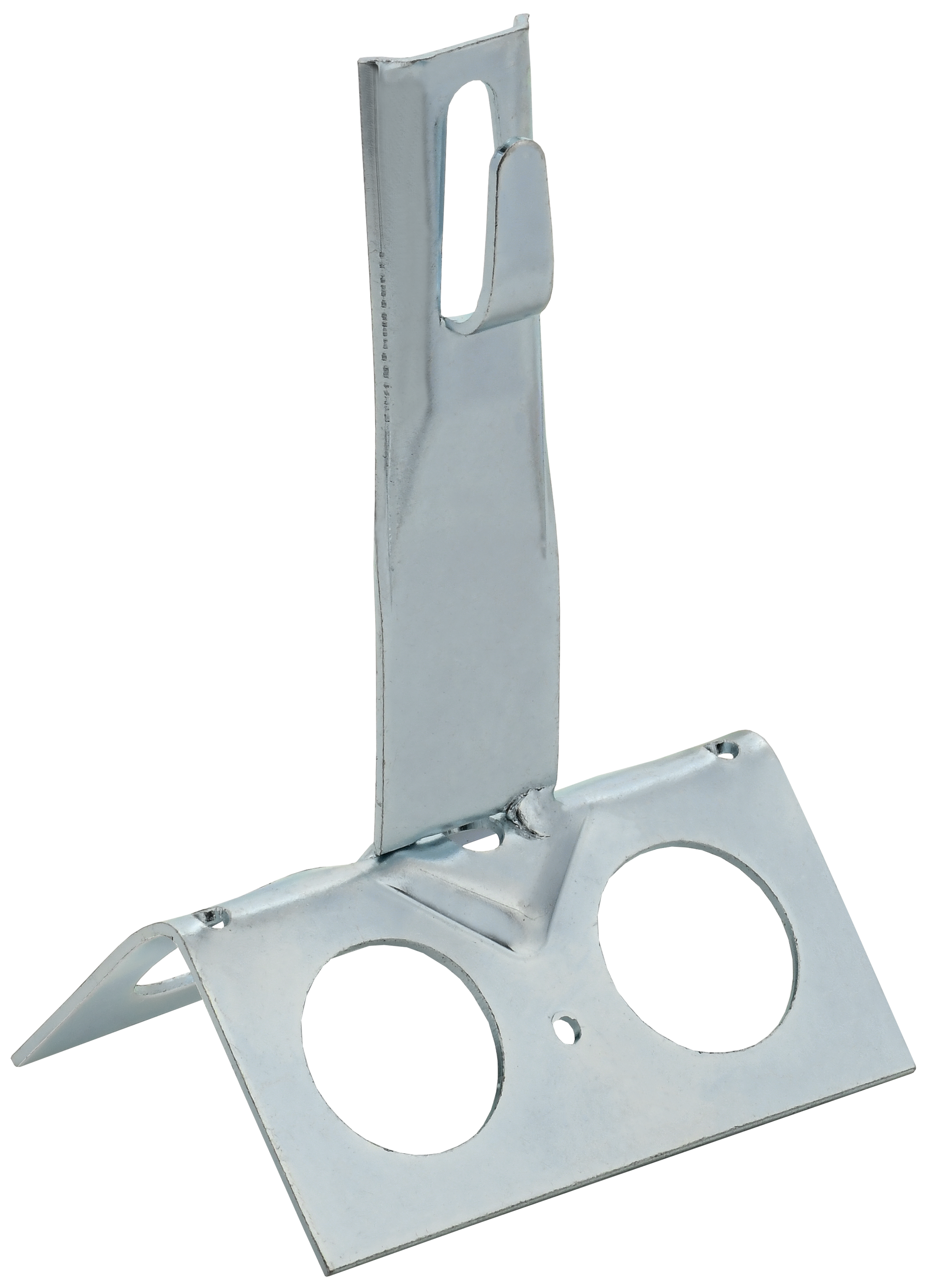 скатной кровли. Зажим проводника происходит путем загибания «язычка» держателя. На коньке крепится при помощи метизов. Материал корпуса - сталь с гальваническим цинковым покрытием.