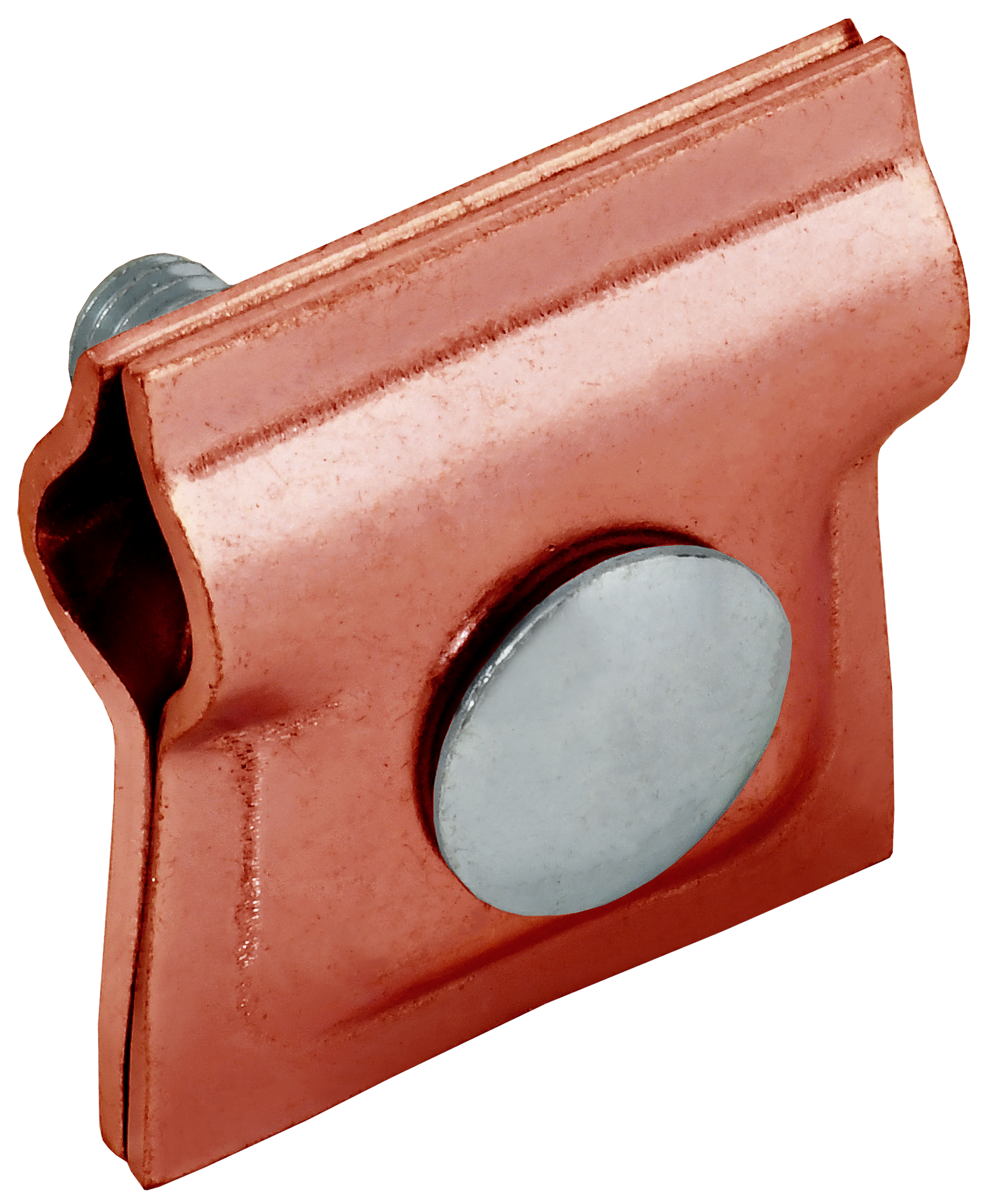 Крепится к кровле при помощи метизов. Зажим проводника происходит при помощи болтового соединения. Материал корпуса - медь.