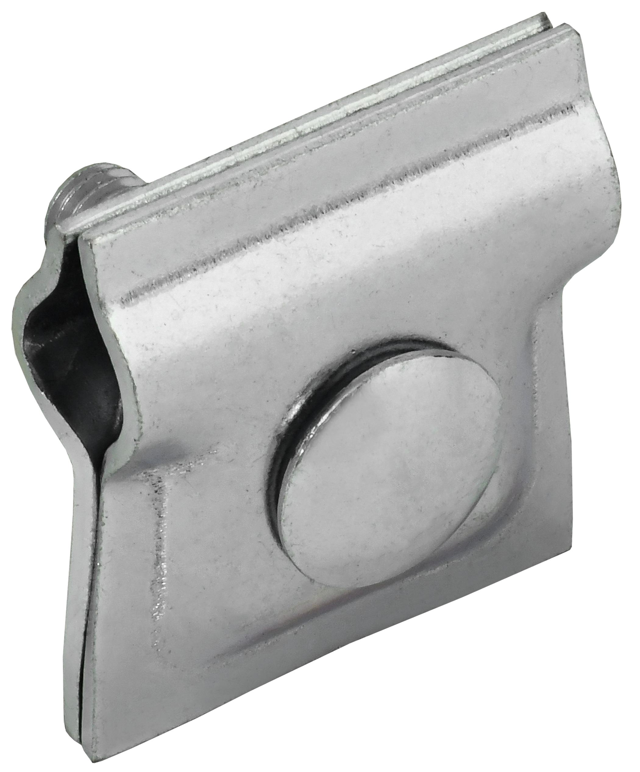 Крепится к кровле при помощи метизов. Зажим проводника происходит при помощи болтового соединения. Материал корпуса - сталь с гальваническим цинковым покрытием.