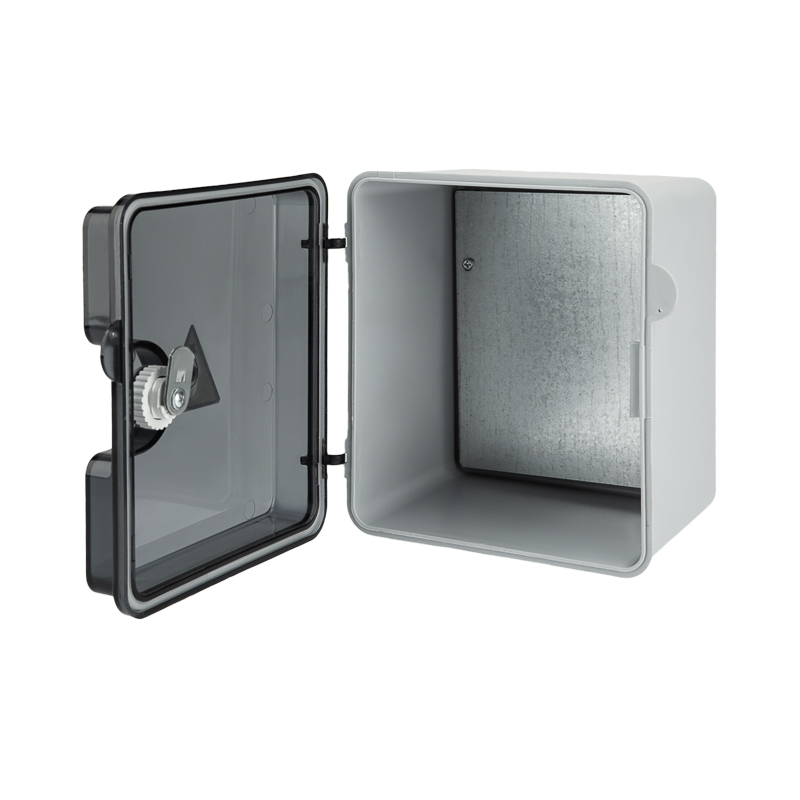 Корпус защищает устройства от любых негативных воздействий окружающей среды (пыль и влага), а также допускает установку изделия на улице и в неблагоприятных условиях. Прозрачная дверца изготовлена из прочного АБС-пластика.