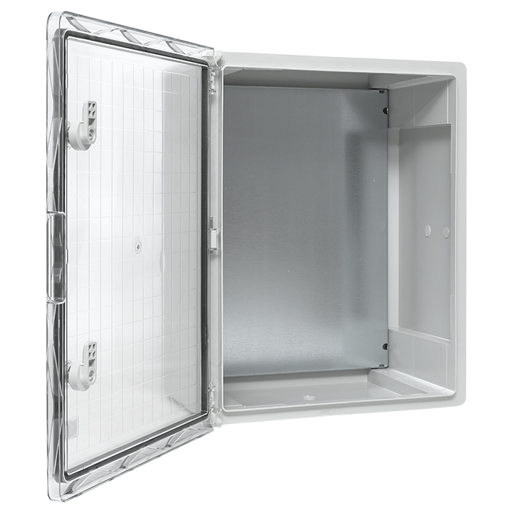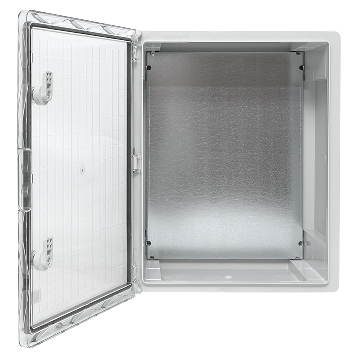 Щиты пластиковые ЩМП-П IP65 навесного исполнения с монтажной панелью предназначены для установки модульного и силового электрооборудования для сборки щитов автоматизации, распределения и управления. Щиты изготовлены из ударопрочного АБС-пластика и обеспечивают надежную защиту установленного оборудования. Степень защиты IP65 предотвращает проникновение пыли и влаги, обеспечивая безопасное функционирование внутренних компонентов шкафа. Поставляются с двумя типами дверей: глухой и прозрачной.