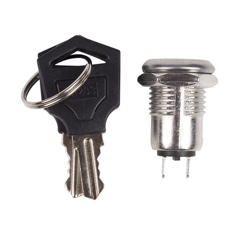 Выключатель ключ Ø12 250V 0.5А (2с) ON-OFF предназначен для коммутации электрических цепей переменного тока напряжением 250В. Выключатель-ключ применяются в качестве комплектующих изделий различного электрооборудования (блоках питания, электроустановках на различных производствах, автомобилях, и многих других местах). Такой переключатель имеет два положения. Для переключения в нужное положение установите ключ (поставляется в комплекте) и приложите некоторые усилия на него. Монтаж осуществляется без применения винтов на плоских панелях толщиной от 0.8мм до 3мм. Подключение контактов осуществляется с помощью пайки.Основные характеристики:Номинальное напряжение: 250V(AC) / 24V(DC) ;Номинальный ток: 0.5A (250VАC) / 4A (24VDC);Тип переключения: ON-OFF;Количество контактных групп: 1;Количество контактов в контактной группе: 2;Фиксация положений: да;Индикатор коммутационных положений: отсутствует;Рабочая температура: от -25℃ до +75℃;Ресурс: 10 000 циклов.