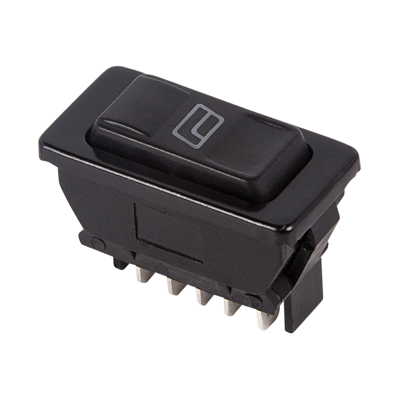 Выключатель (стеклоподъемника) клавишный 12V 20А (5с) (ON)-OFF-(ON) черный с подсветкой предназначен для коммутации электрических цепей напряжением 12В. Такой клавишный переключатель применяются в качестве комплектующих изделий автотранспортного электрооборудования (в легковых и грузовых автомобилях, автобусах и других транспортных средствах). Клавиша стеклоподъемника имеет три положения и подсветку (для облегчения поиска при отсутствии освещения). Принцип действия основан на перемещении клавиши в одну из позиций. Для переключения в нужное положение требуется приложить некоторые усилия на клавишу. Монтаж осуществляется без применения винтов на плоских панелях толщиной от 0.8мм до 3мм. Подключение контактов осуществляется плоской клеммой, либо колодкой с плоскими клеммами.Основные характеристики:Номинальное напряжение: 12В;Номинальный ток: 20A (12DC);Тип переключения: (ON)-OFF-(ON);Количество контактных групп: 1;Количество контактов в контактной группе: 5;Фиксация положений: отсутствует;Индикатор коммутационных положений: отсутствует;Рабочая температура: от -25℃ до +85℃;Ресурс: 10 000 циклов.