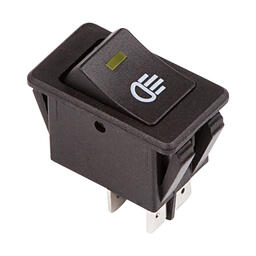 Выключатель клавишный 12V 35А (4с) ON-OFF с желтой подсветкой предназначен для коммутации электрических цепей напряжением 12В. Такой клавишный переключатель применяются в качестве комплектующих изделий автотранспортного электрооборудования (в легковых и грузовых автомобилях, автобусах и других транспортных средствах). Клавиша включения внешнего освещения имеет два положения и подсветку. Принцип действия основан на перемещении клавиши в одну из позиций. Для переключения в нужное положение требуется приложить некоторые усилия на клавишу. Монтаж осуществляется без применения винтов на плоских панелях толщиной от 0.8мм до 3мм. Подключение клавиши осуществляется с помощью плоских клемм или пайкой контактов.Основные характеристики:Номинальное напряжение: 12В;Номинальный ток: 35A (12DC);Тип переключения: ON-OFF;Количество контактных групп: 2;Количество контактов в контактной группе: 2;Фиксация положений: да;Индикатор коммутационных положений: желтый;Рабочая температура: от -25℃ до +85℃;Ресурс: 10 000 циклов.