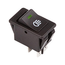 Выключатель клавишный 12V 35А (4с) ON-OFF с зеленой подсветкой предназначен для коммутации электрических цепей напряжением 12В. Такой клавишный переключатель применяются в качестве комплектующих изделий автотранспортного электрооборудования (в легковых и грузовых автомобилях, автобусах и других транспортных средствах). Клавиша включения внешнего освещения имеет два положения и подсветку. Принцип действия основан на перемещении клавиши в одну из позиций. Для переключения в нужное положение требуется приложить некоторые усилия на клавишу. Монтаж осуществляется без применения винтов на плоских панелях толщиной от 0.8мм до 3мм. Подключение клавиши осуществляется с помощью плоских клемм или пайкой контактов.Основные характеристики:Номинальное напряжение: 12В;Номинальный ток: 35A (12DC);Тип переключения: ON-OFF;Количество контактных групп: 2;Количество контактов в контактной группе: 2;Фиксация положений: да;Индикатор коммутационных положений: зеленый;Рабочая температура: от -25℃ до +85℃;Ресурс: 10 000 циклов.